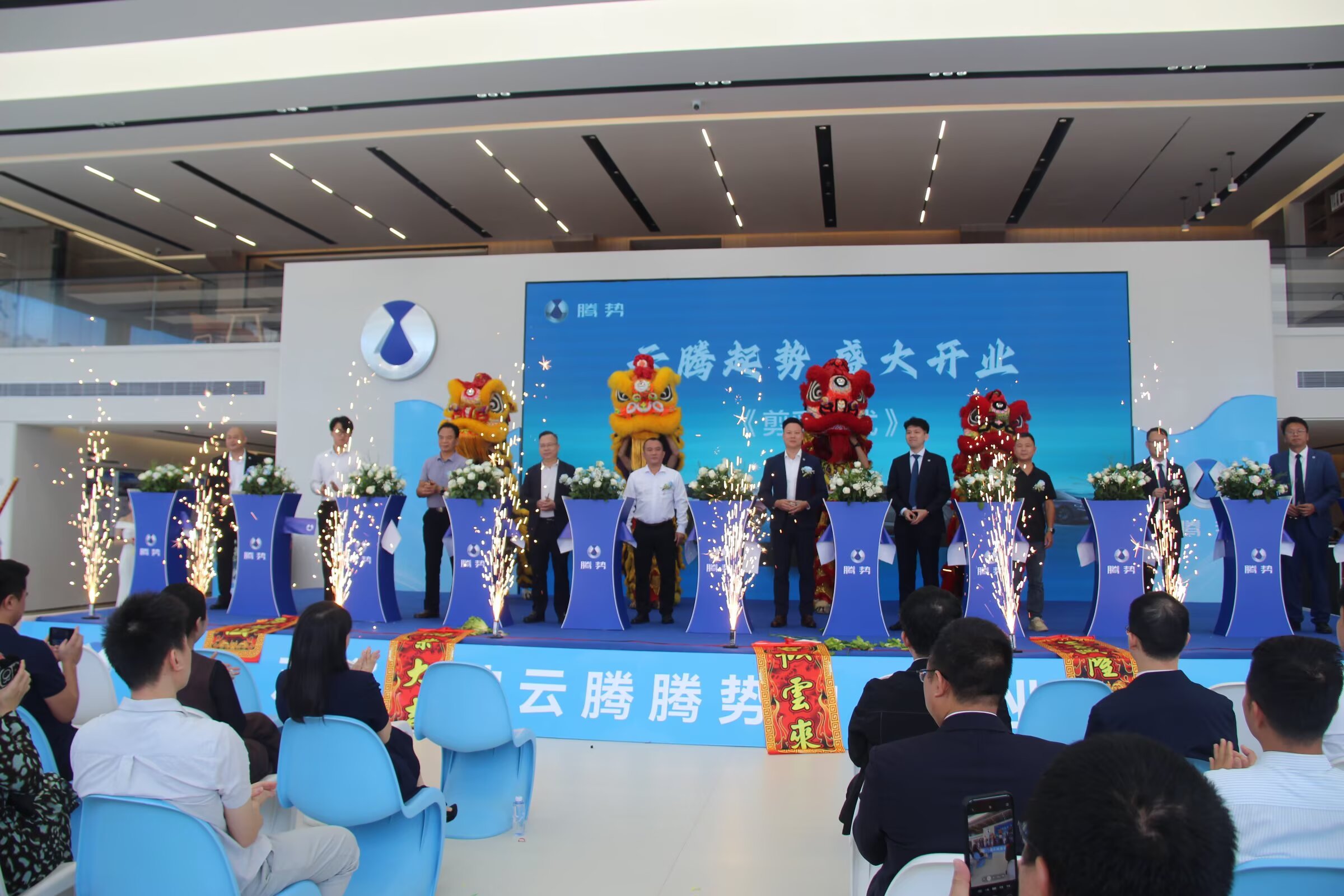 龙鼓齐鸣启华章,授牌接青承愿景 盛典在气势恢宏、振奋人心的龙鼓舞中拉开帷幕。激昂的鼓点与矫健的舞狮表演交织,瞬间点燃了现场的热烈气氛,寓意着茂名云腾未来的发展如龙腾九天,势不可挡。随后,主办方及特邀嘉宾领导相继登台致辞,他们对茂名云腾中心的落成开业表示热烈祝贺,并一致认为,这不仅是一座现代化4S店的启航,更是腾势品牌深耕粤西市场、积极响应国家新能源发展战略的重要里程碑,将为区域汽车消费升级和绿色出行生活注入强劲动能。