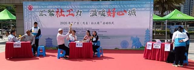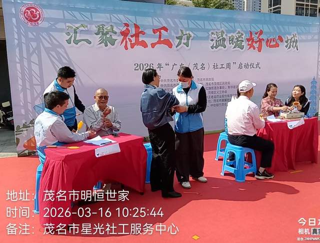 春风送暖,社工同行。3月16日,2026年“广东(茂名)社工周”在西粤路明湖电器广场正式启动。这场以“汇聚社工力 温暖好心城”为主题的盛会,凝聚起全市社工的专业力量,也让社会工作的温暖光芒照亮茂名的大街小巷。茂名市星光社工服务中心以情景短剧、互动问答、禁毒宣传等多元形式,生动展现“星光计划”社区价值循环与融合体系的助老成效,让专业社工力量与社区互助温情在活动现场完美交融。